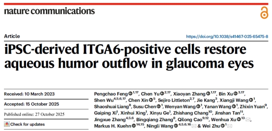 朱玮教授课题组2024届博士生封鹏超和张晓燕同学在《Nature communications》上发表了攻读博士期间的第1篇研究论文,论文题目为“iPSC-derived ITGA6-positive cells restore aqueous humor outflow in glaucoma eyes”(DOI:10.1038/s41467-025-65475-8)。博彩网站