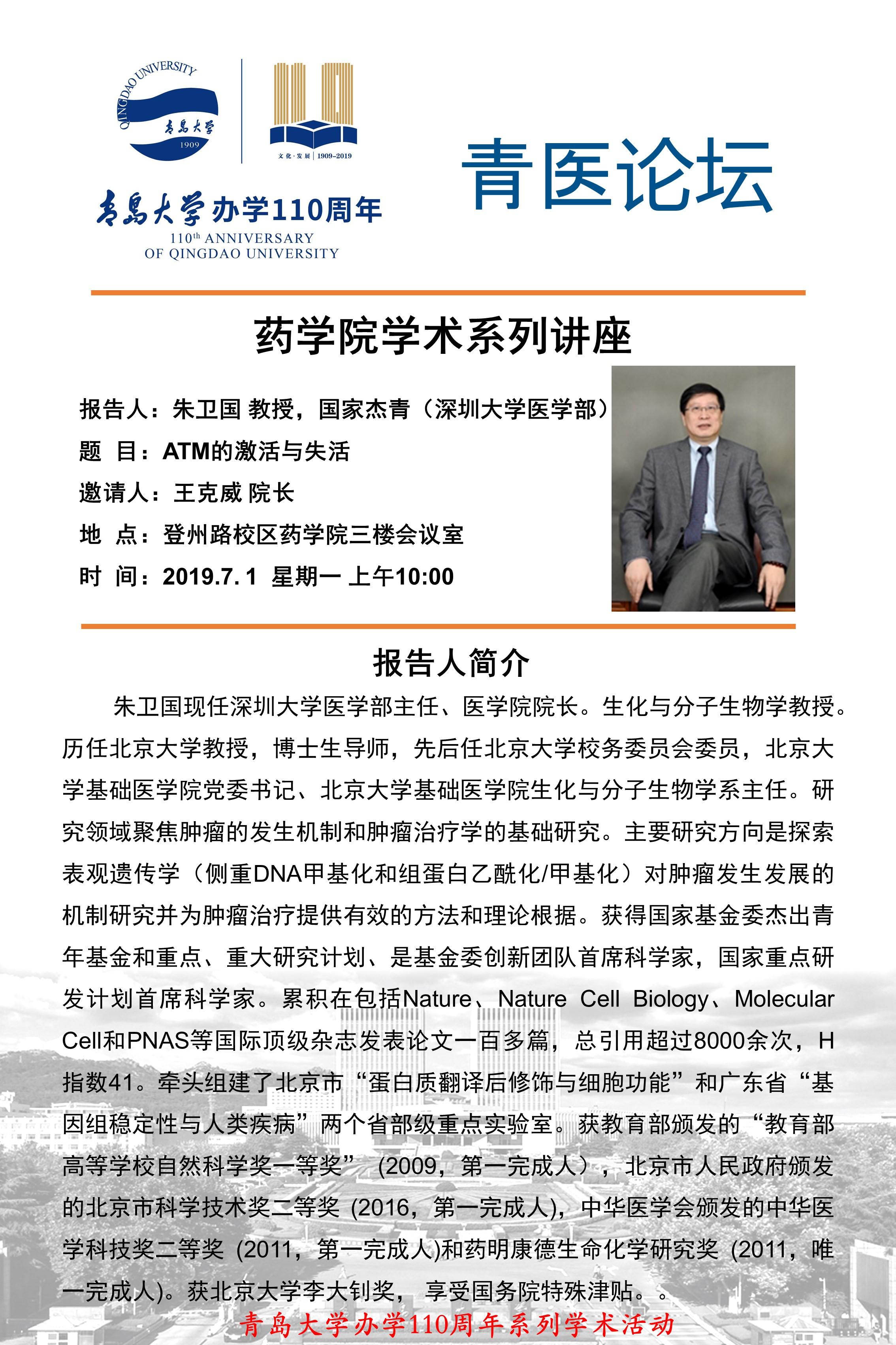 博彩网站 学术系列讲座预告--朱卫国 教授